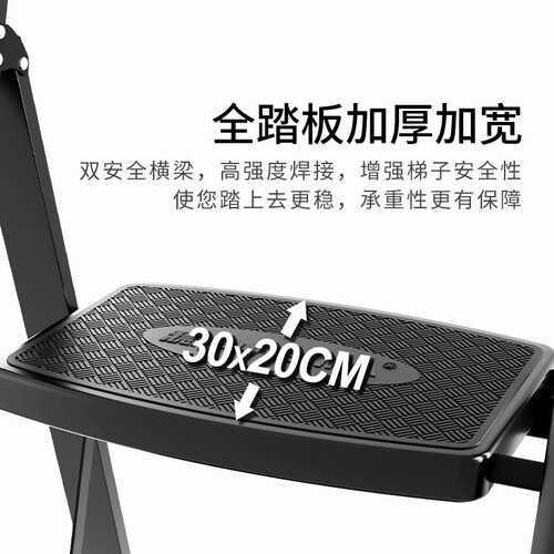 梯身采用超薄设计,折叠后便于收纳不占空间,更具人性化。轻便羽量化梯身,单手即可拎起,移动方便不费力。