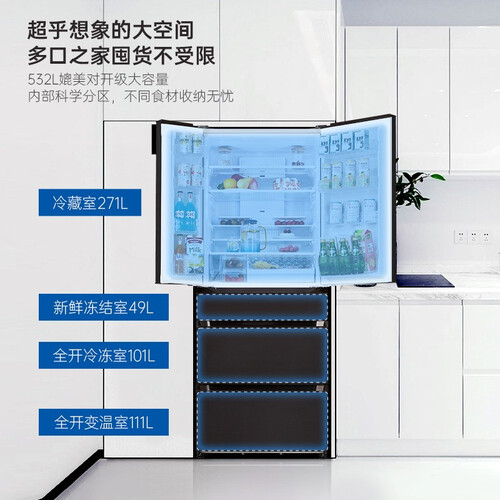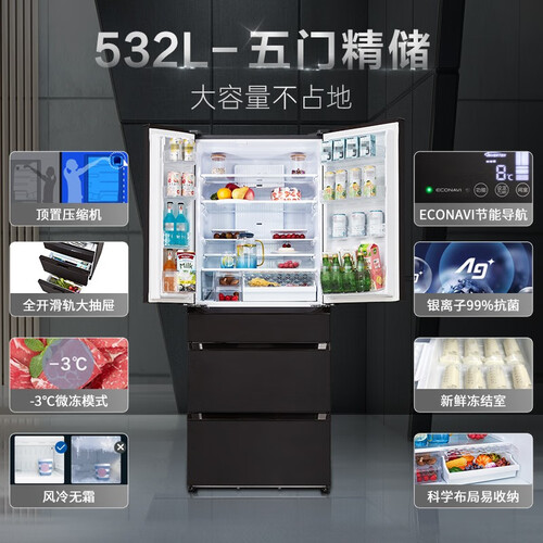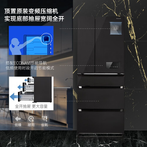 采用ECONAVI节能导航,保证保鲜效果,同时具有省电优势。采用顶置压缩机和下层全开大抽屉,节约空间,提高空间利用率。