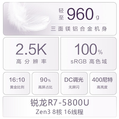 三面皆为金属机身,由镁铝合金材质打造,带来突破性轻量级便携体验。窄边框大屏展现出高色域黄金比例,满足你对色彩的幻想。