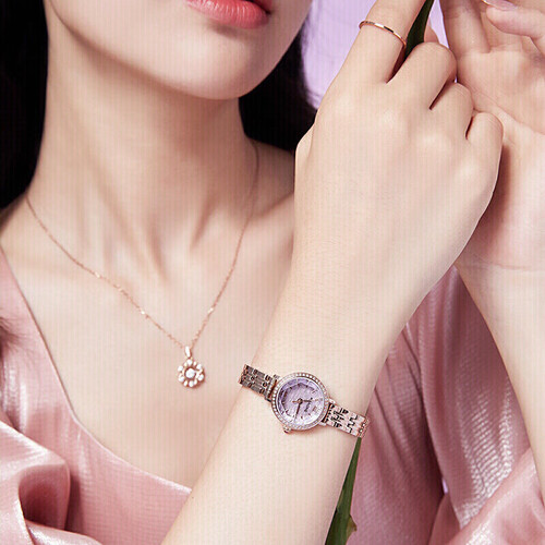 玫瑰闪粉表盘,温柔亮丽,打造腕间粉闪点点,营造烂漫幻想。纤细轻巧的表带,佩戴舒适无负担。