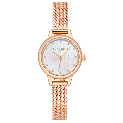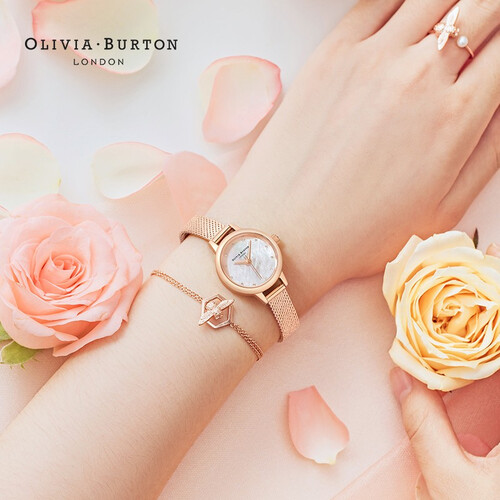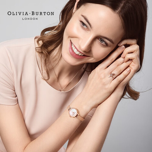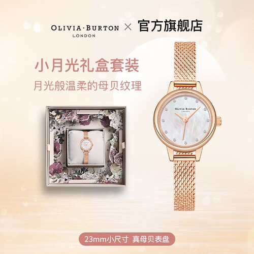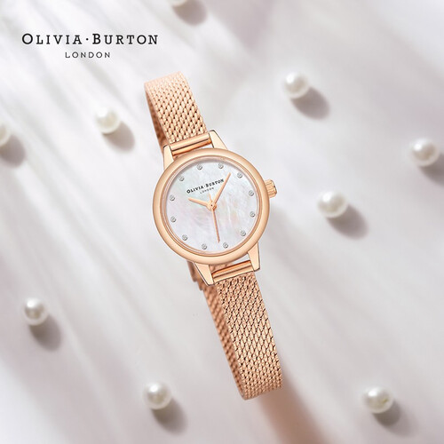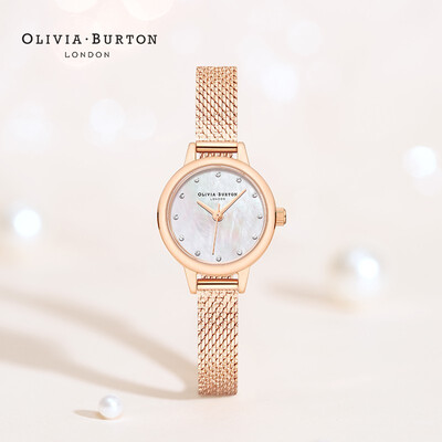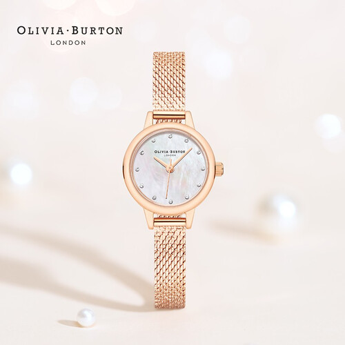 表盘直径仅为23mm,设计小巧精致,佩戴凸显纤细的手腕。表盘具有母贝纹理,展现出温柔的色彩,凸显女性的柔美。