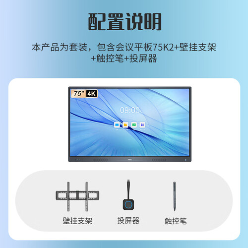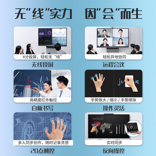 具有4K超清大屏,画质细节清晰可辩,色彩更细腻丰富。此案有高精度红外线触控技术,多人书写流畅不卡,轻松应对工作会议。