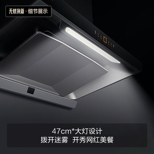 满足日常用光需求的光感大灯,让你的厨房变得通透明亮,烹饪美食更加方便。挥手即可控制油烟机,减少手指上的油污弄脏面板。