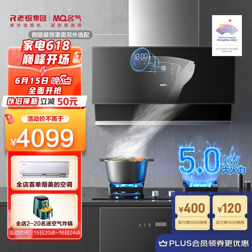 搭载AI手感智控系统,轻松一挥即可开关机无需接触控制面板。采用一级能效设计,大火力燃烧热效率越高即更节能省气。