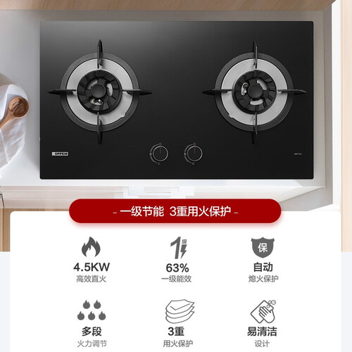 搭配熄火保护功能,护您烹饪无忧,远离意外隐患,使用更多一份安心。台嵌两用,安装便利,更好与现代厨装融为一体。