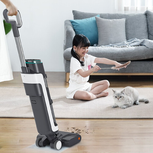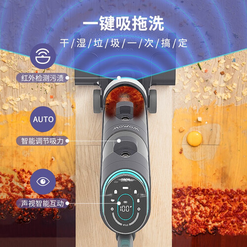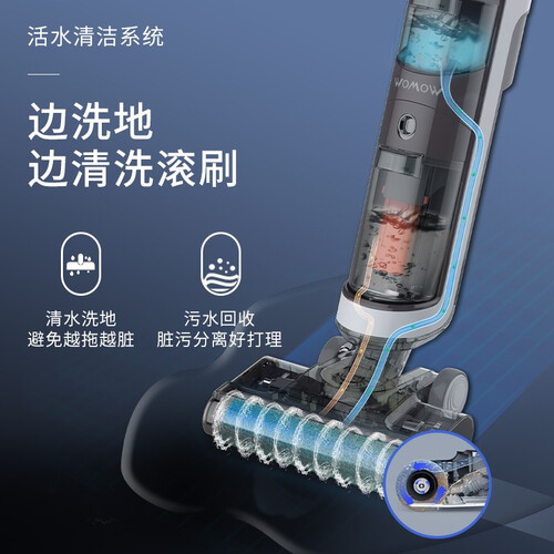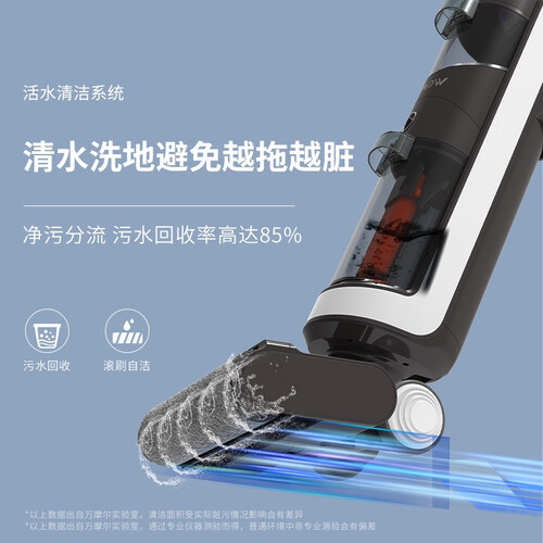 采用活水清洁系统,滚刷实时自清洁,清洁过程中滚刷时刻保持洁净,避免越拖越脏。搭载LED智能显示屏,工作状态一目了然。