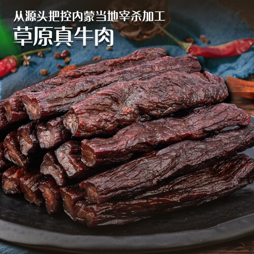 甄选草原牛后腿肉为原料,肉质纹理清晰色泽自然,散发着浓郁香味。三段式温控烘烤,成就了产品润而不柴的好口感。