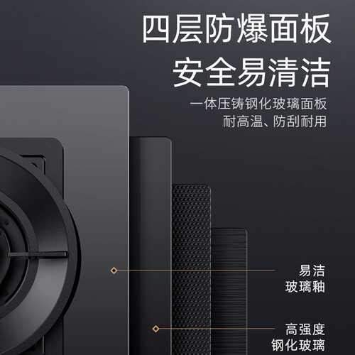聚能稳焰系统有效的锁住热量,使火力面面俱到,采用一体压铸钢化玻璃面板,耐高温,安全易清洁。