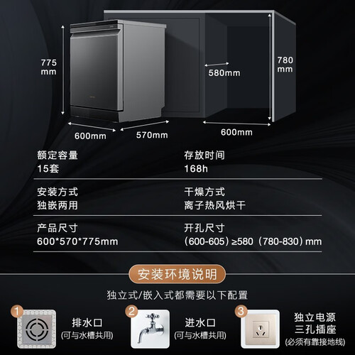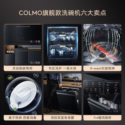 灵动独嵌两用,不挑位置随心装,让厨房空间愈显灵动。X-wash对旋喷淋,对餐具正反面同时冲刷,让餐具光洁如初。