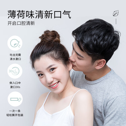 清新的薄荷漱口水,采用独立包装设计,一撕即开使用方便。在口中含30秒,可清洁整个口腔,薄荷添加倍感清爽。