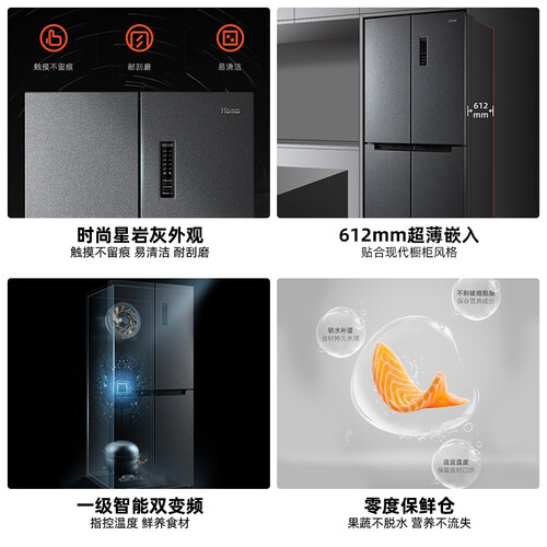 搭载专利智能双变频系统,精准调温,减少波动,营造适宜的储鲜环境。内置LTC蓝晶净味模块,全时强力祛味,让冰箱持久清新。