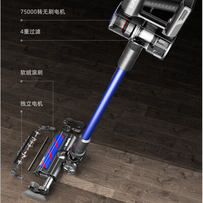 1.23kg轻量化机身设计,使用不费力,可以轻松举起。安装75000转无刷电机,具有强劲吸力,可快速完成清洁工作。