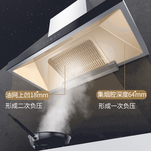 立体内锥深集烟腔,双负压强劲拢烟不扩散,防止油烟外逃。拥有多挡风量,根据排烟需求进行选择,减少余烟残留。
