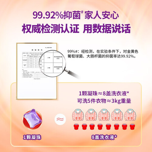 只需一颗放入洗衣机即可,从此告别剂量洗涤剂,外壳遇水即溶,实用不浪费;去渍、除菌、护衣三大功效全搞定,实现轻松洗涤体验。
