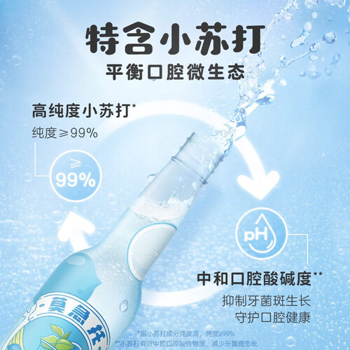 清凉度对比普通漱口水提升24%,持续时间也更久,时刻保持口腔清爽。特含小苏打成分,能中和口腔酸碱度,守护牙齿健康。