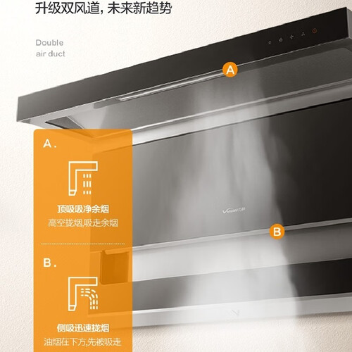 895毫米的大尺寸,控烟面积更广阔,满足开放厨房烹饪需求。90秒延时关机,将厨房余烟吸净,拒绝残留。