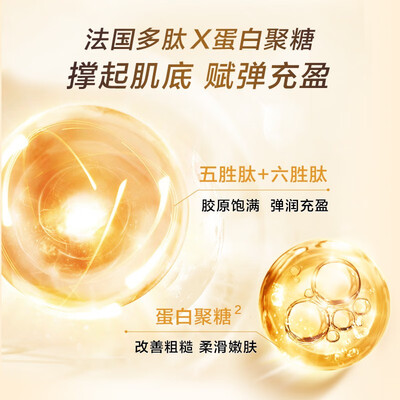 法国多肽加乘蛋白聚糖,充盈胶原蛋白,改善肌肤的粗糙等状态。透明质酸钠为肌肤注入水分,肌肤愈加细腻弹润,上妆也不易卡粉。