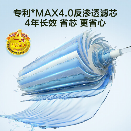 MAX4.0反渗透滤芯,多方面循环进水,延长使用寿命。5秒接满一杯水,水流速度快,减少不必要等待。