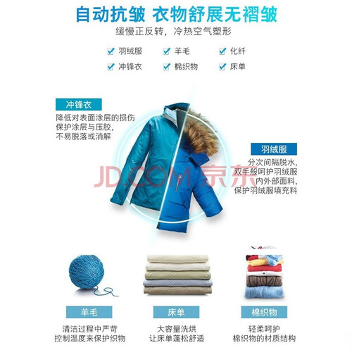 采用自清洁,可以自动清洁机器内部残留物,避免衣服的二次污染。搭载AI智能烘干,衣服不易褪色褶皱少,穿的更长久。