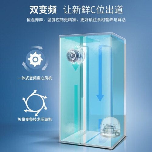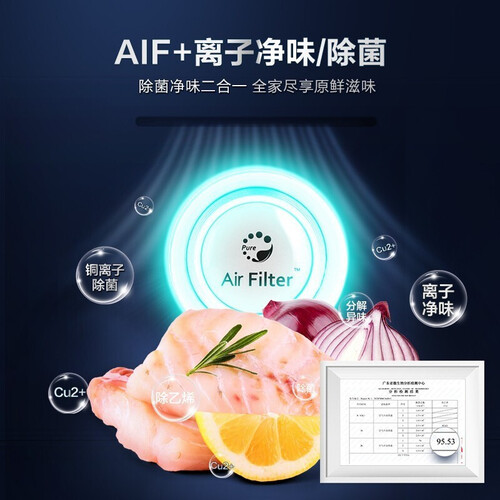 532升大容量存储,水果蔬菜肉类多种食材也能分类处理。风冷无霜功能,肉类冷冻存储也能避免表面结霜,带来更放心的食材。
