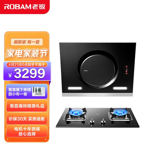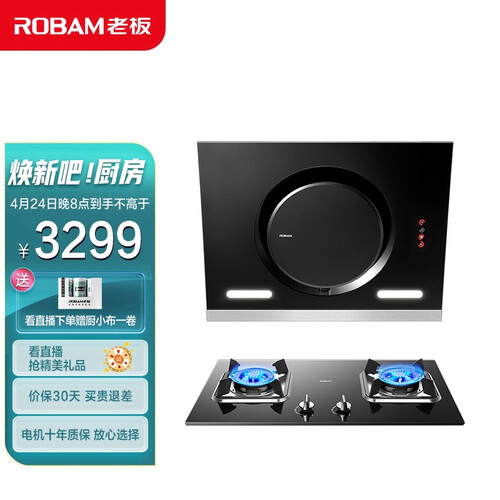 老板 一键爆炒大吸力烟灶套装