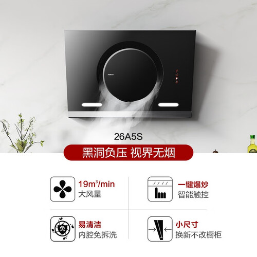 烟机一键开启爆炒,风量可增到19m³/min,油烟不扑面。燃气灶热效率达63%,烹饪耗时短,美味不久等。