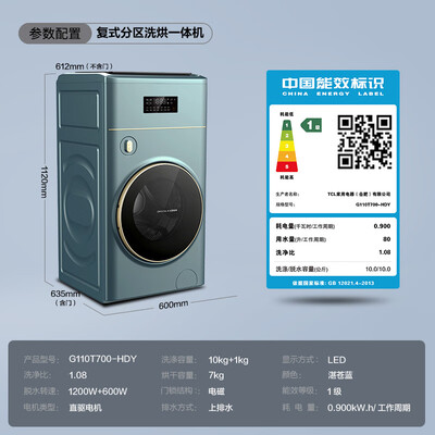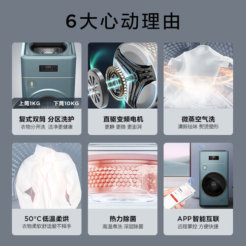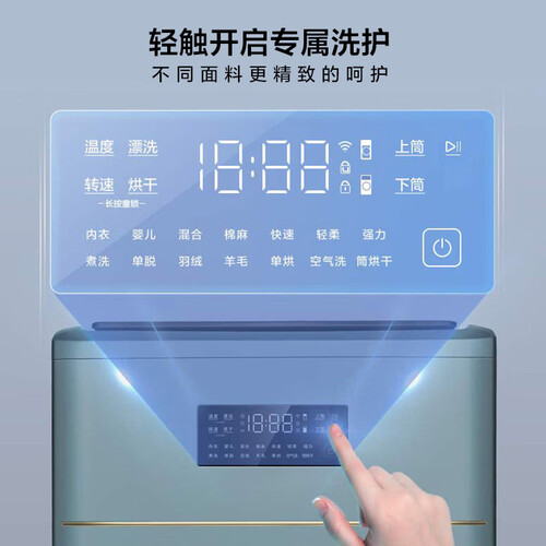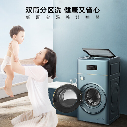 复式双筒设计,可将衣物按类分区洗涤,避免交叉污染;上筒支持70℃高温水洗,有效除菌,呵护衣物健康,适合有宝宝的家庭。