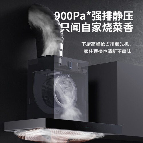 环吸云板结合澎湃吸力,双灶同时烹饪也能轻松应对,保持清爽爆炒。900Pa强排静压,高峰期排烟也不影响。