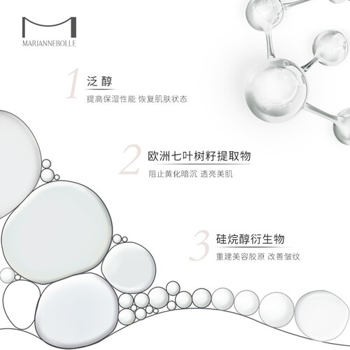 含有泛醇与香柚提取物神经酰胺,补充肌肤所需水分,减少养分流失。加入欧洲七叶树籽提取物,轻松击退熬夜肌。
