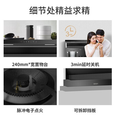 搭载精密安防系统,给家人带来使用安全感,使用更放心。加上3min延时关机功能,能够帮助清除油烟,还原清新空气。