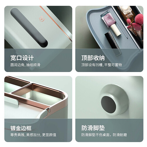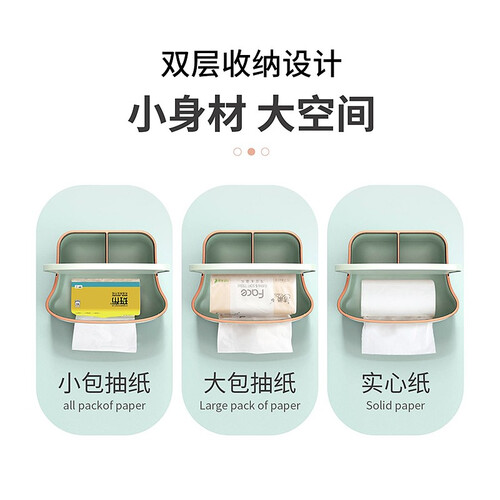 双层收纳设计,可放置各种大小纸巾,还能收纳小物件节省空间。采用ABS材质制作,环保材质使用安心,底部防滑不走位。