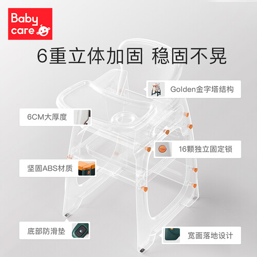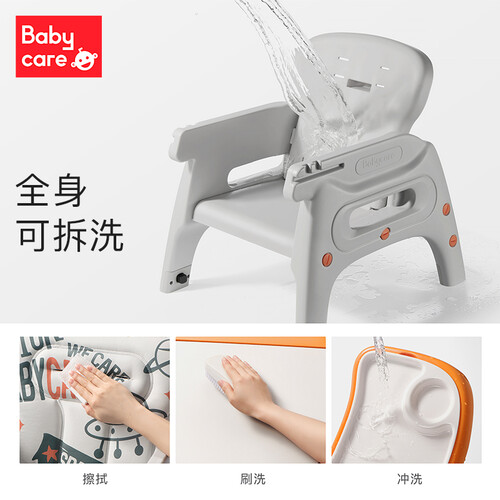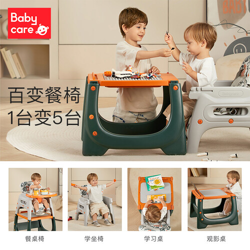这是一款拥有众多功能的儿童餐椅,它既可以当作餐桌椅使用,也可以当作学坐椅使用,同时还可以当作学习桌、观影桌,游戏桌使用。