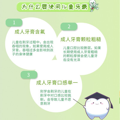 采用不含氟的配方,更好地呵护口腔健康,避免受损。晶莹的质地,膏体通透美观,更能吸引孩子的注意力,让孩子不抗拒刷牙。