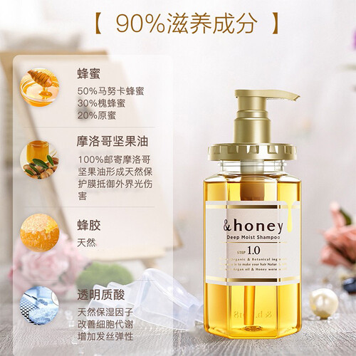 蜂蜜和摩洛哥坚果油精华,专业级护发养护配方,提升锁水力,增加光泽度。透明质酸全面补水,直击干枯毛躁,发质如愿顺滑。