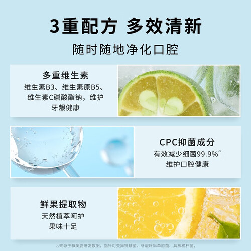 采用凉感缓释技术,温和不辣喉,能够有效舒缓咽部不适问题。内含多重维生素成分,润泽爽口,清新去火。