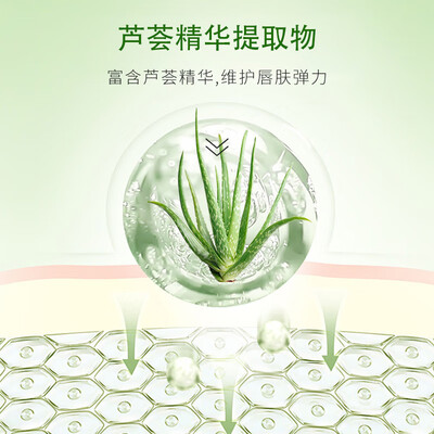 含芦荟精华提取物,防止干裂起皮,提升唇部防护能力。质地轻薄不粘腻,消除唇纹,令唇部丰润有型更滋润。