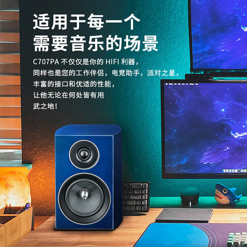 尊宝HiFi有源书架音箱,外观设计时尚亮丽,为您的客厅添彩。搭载中心相位塞,实现更快的发声,且具有更高的声音清晰度。
