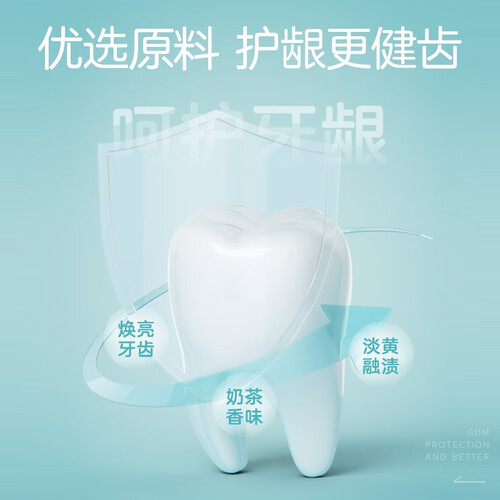 香甜的奶茶味牙膏,刷牙后嘴巴会有甜甜的香味,摆脱口臭的烦恼。选用植萃精华护齿,防止牙斑菌的形成,缓解口腔问题。