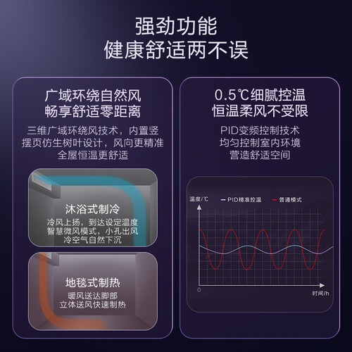 内置仿生树叶设计,确保送风方向准确无误,全身感受温度包围。拥有一级能效,符合国家节能标准,低碳环保更省电。