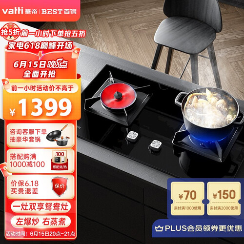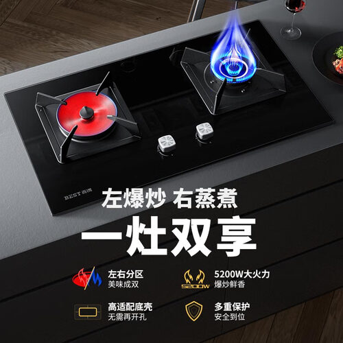 左右分区设计,左爆炒,右蒸煮,双灶合璧解锁更多美味。多重安全防护加持,满满的安全感,使用无忧虑。