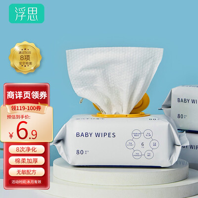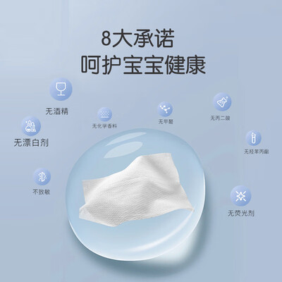 8大无添加,通过了A+级检测,为婴幼儿安全保驾护航,妈妈更放心。加厚水刺无纺布,反复擦拭不易掉絮。