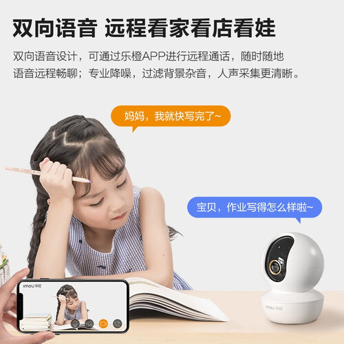 双向语音对讲设计,可随时随地与家中父母远程通话。设有智能跟踪模式,当检测到移动人形就会自动跟拍并保存。