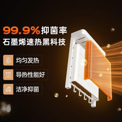 新型石墨烯结合速热核心技术,导热均匀快速,加热洁净两不误,一开即热无异味。萌趣小巧机身,安装不占地,驾驭小浴室空间。