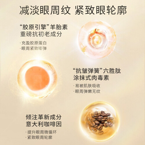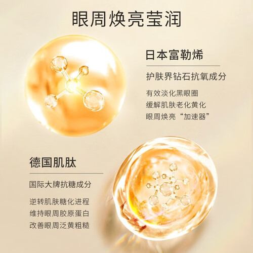 含有富勒烯成分,助力淡化眼周暗沉,抵御岁月侵袭。德国肌肽成分,可以逆转糖化问题,令眼周胶原更加充盈。