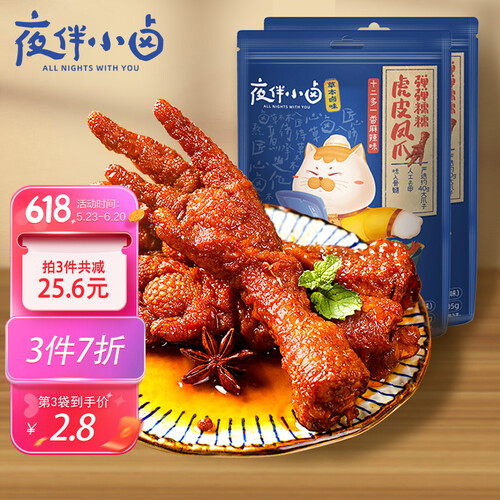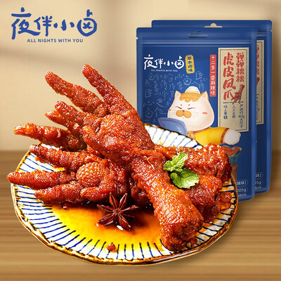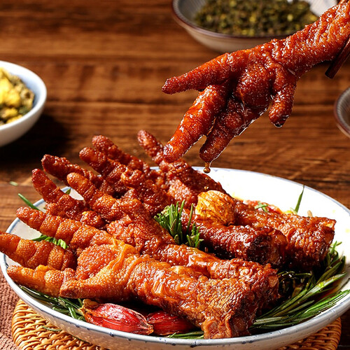 精选优质鸡爪,单支重量达40g,与手机的长度相当。每个鸡爪都是先炸才卤,十分酥软,骨头都能一起吃。