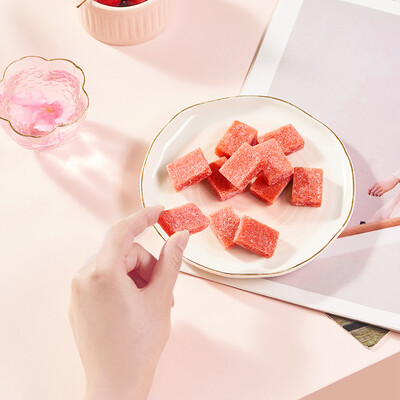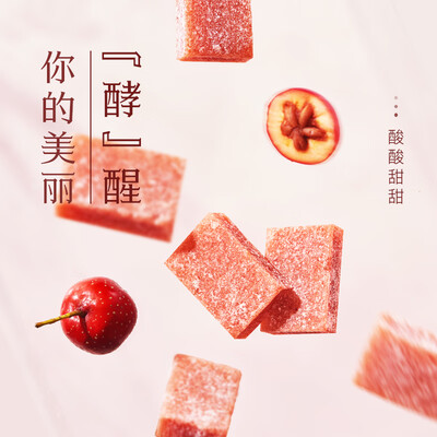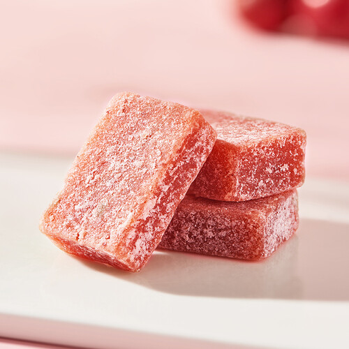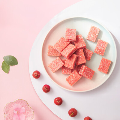 甄选自然成熟后的山楂果为原料,进行打浆制作而成的山楂糕。酸酸甜甜无涩味,加上与植物酵素的甜蜜碰撞,入口酸甜软糯不黏牙。