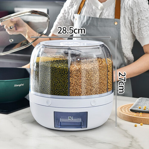 分格储物设计,不同粮食都可以分开存放,收纳快捷又轻松。一键按压取米,操作简单不复杂,取米不浪费。顶盖支持拆卸,添加粮食不发愁。