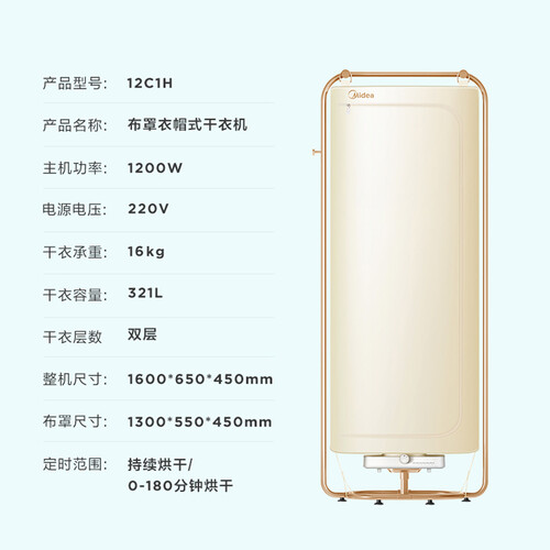 设置1200W功率,烘干衣服更快速,即日洗即日即可穿。搭载高温内循环技术,有效出去衣物中细菌,打造健康舒适衣物。