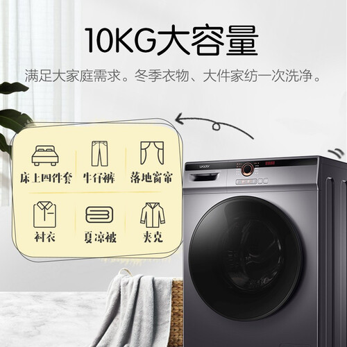 拥有空气洗功能,能够去除灰尘以及异味,使得洗涤更加舒心。10KG大容量空间设计,可以使得洗涤的衣服尽情舒展。