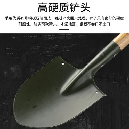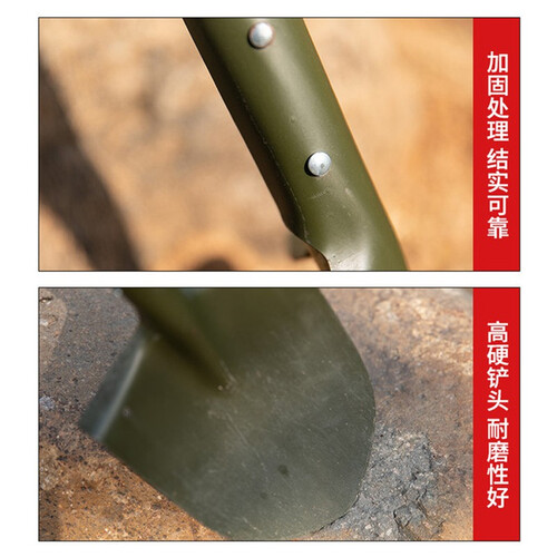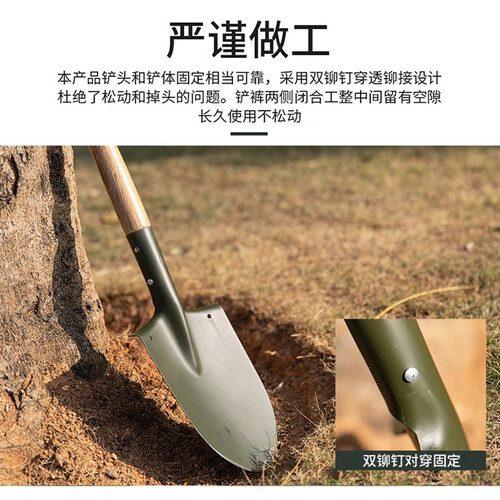 精细打磨后的手柄,触感细腻丝滑,无毛刺感,使用不会生长茧子。双铆钉加固铲头铲体,保持稳固结实,久用不松动。